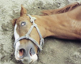 発症馬にみられた全身の強直と瞬膜の露出
